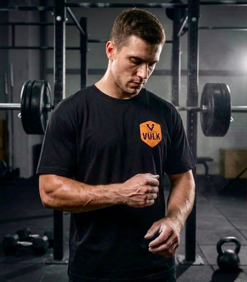 El logo frontal pequeño y el diseño trasero protagonista refuerzan la identidad VÜLK con una estética potente y reconocible.